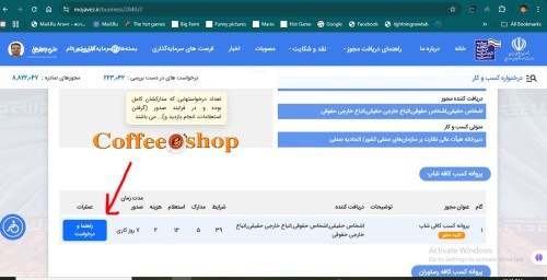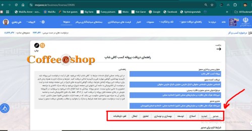 - جستجوی عنوان مجوز: «پروانه کسب کافیشاپ» یا «پروانه کسب صنفی» یا «کافی شاپ»