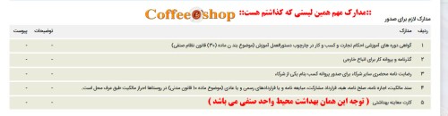مدارک رایج برای صدور پروانه کسب کافیشاپ: