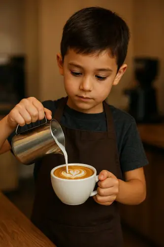 • 🌱 پرورش خلاقیت: کار با قهوه، از لاته آرت گرفته تا دم‌آوری دستی، بستری عالی برای بروز خلاقیت کودکان است.